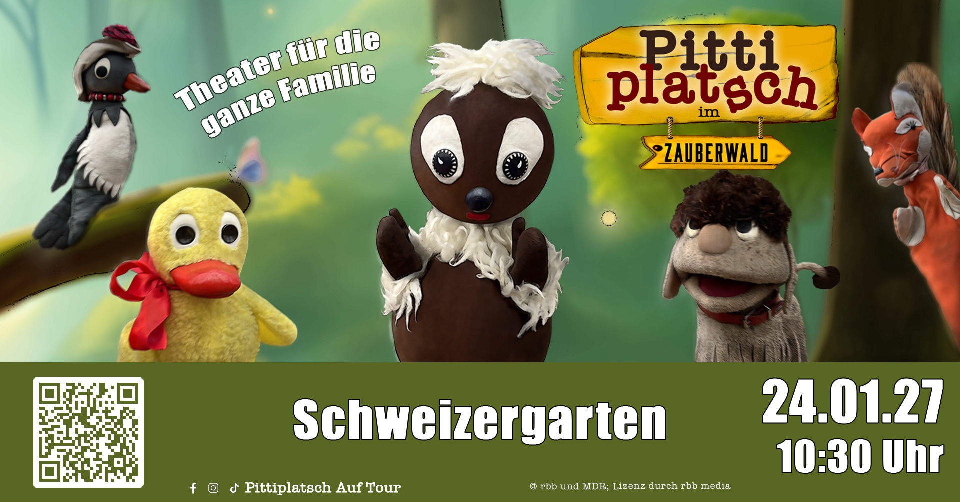 Wenn der Pitti loszieht, bleibt kein Ast gerade! Gemeinsam mit seinen Freunden Schnatterinchen, Moppi, Herr Fuchs und Frau Elster begibt er sich auf eine spannende Reise durch den Zauberwald – mit lustigen Überraschungen, Liedern und Tänzen und einer ordentlichen Portion Schabernack!